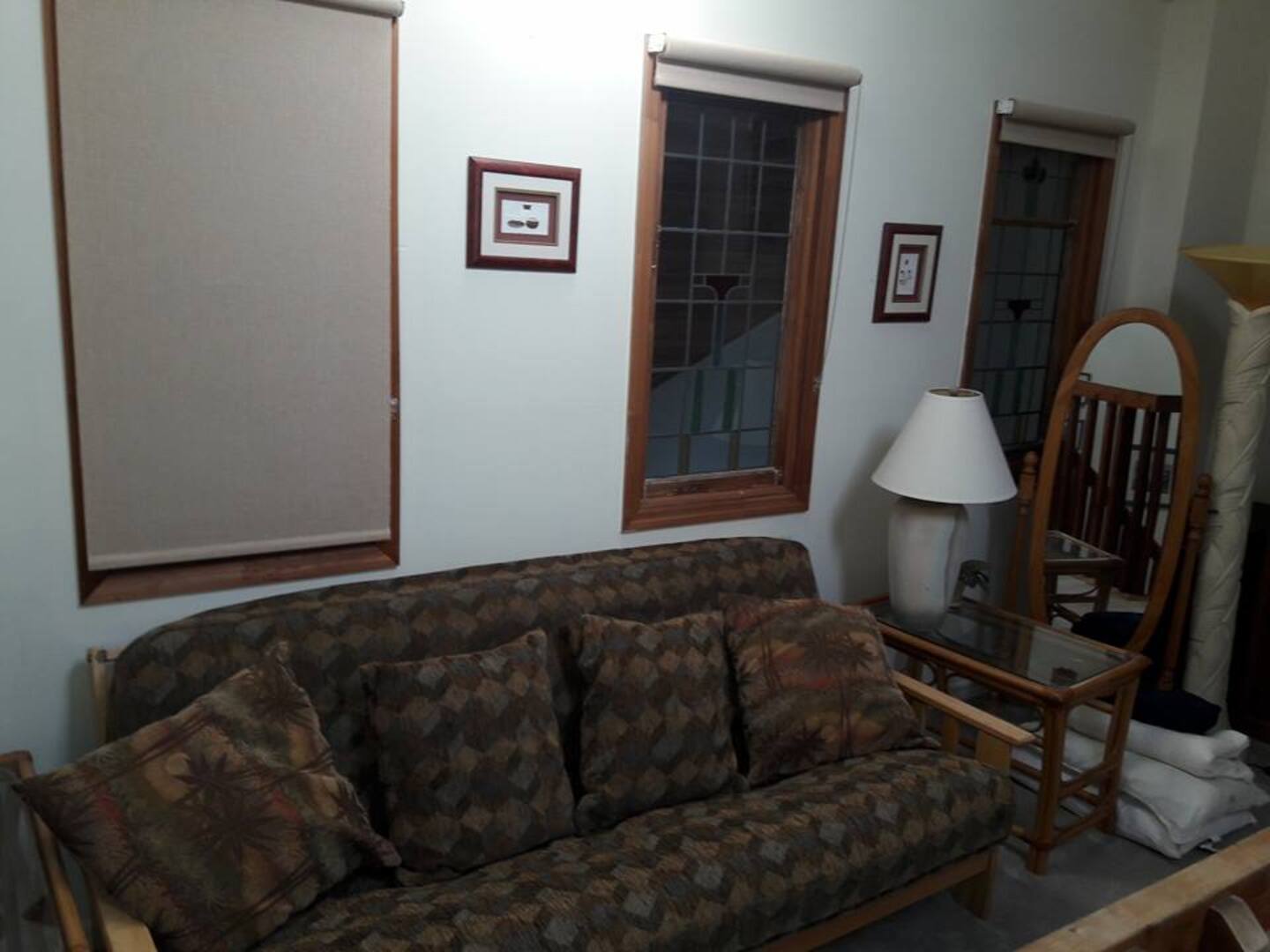 THIRD FLOOR LOFT with Stained Glass Windows from an ancient church Scotland. Queen Size sofa sleeper and futon, computer armoire, and double closet