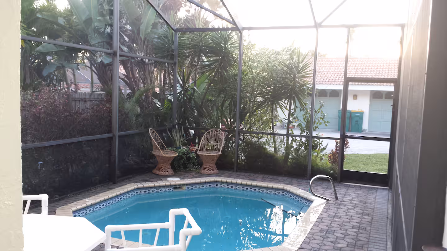 Personal pool in 2 story screen room off kitchen (just for this townhome unit) Pool area has Four-person glider with table, chairs, side tables, cushions available upon request.