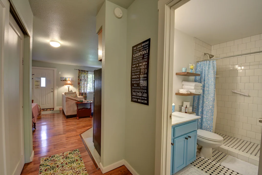 NEWLY RENOVATED! Come to historic Sandpoint, Idaho and enjoy our adorable, first floor condo that is conveniently located just 2 blocks from downtown! From here, you can ride bikes (2 are included!) take the Spot bus, or walk to local shops, coffee houses, the community-owned Panida Theater, City Beach, quaint bookstores, amazing restaurants, grocery stores, art galleries and Lake Pend Oreille\'s clear water. A scenic 30 minute drive will take you to Schweitzer Mountain Village, where there is everything from bluegrass festivals to huckleberry picking in the summer and world-class skiing in the winter. The Festival at Sandpoint\'s Concert Series in early August is just a 10 minute bike ride away! There are endless opportunities to sight-see, raft, hike, sail or just relax in our picturesque town. Upon arrival, you will find a book we created of our favorite places to eat and explore to help you enjoy all Sandpoint has to offer. Sandpoint\'s free public transport, the \'Spot Bus\', will take you just about anywhere in Sandpoint, Ponderay and Dover!