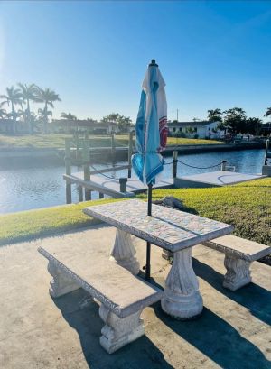 Discover the beauty of Cape Coral from this phenomenal 3-bedroom house. With 2 queen beds and 1 bunk bed, this amazing property offers a comfortable stay for guests. Enjoy the convenience of amenities like a washing machine, AC, WiFi, and more. This home features a private pool, boat dock with Gulf access, and stunning canal views. Relax in the spacious lanai, BBQ grill, and outdoor lounge. Enjoy a fully stocked kitchen, fast Wi-Fi, and smart TVs. Minutes from beaches, dining, and shopping. Perfect for families, boaters, and couples looking for a serene getaway. Our place will help you feel at home while you\'re traveling in Cape Coral.