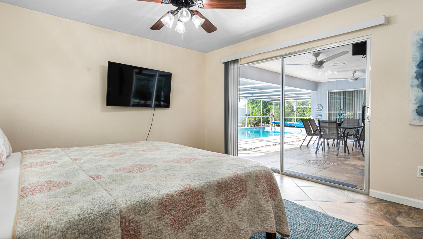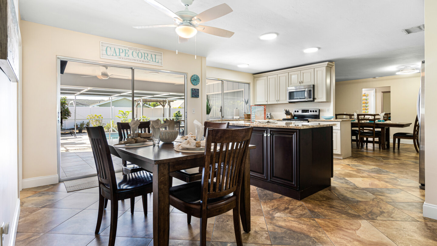 Indulge in a truly idyllic Gulf Coast retreat at this charming 4-bedroom, 2-bathroom residence in Cape Coral. Whether you\'re seeking outdoor escapades, or a sun-soaked escape, this well-situated vacation rental grants you effortless access to all the delights of the area. Step inside to discover a tastefully decorated interior, complete with all the necessary amenities for a worry-free stay, including a fully equipped kitchen, a comfortable furnished lanai, and your very own private pool! Embrace the leisurely vibe as you savor an evening barbecue on the lanai and then gather your loved ones for a relaxing family movie night.