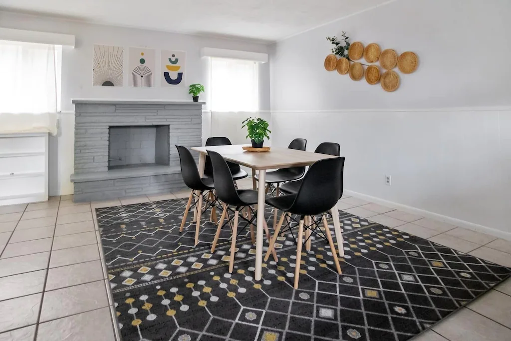 Located just a couple blocks from Main St, our home is the perfect pad for work and play. Newly furnished with our favorite memory foam beds, blackout curtains, desk workspace, and a kitchen fully stocked with kitchen basics to cook your favorite meals.