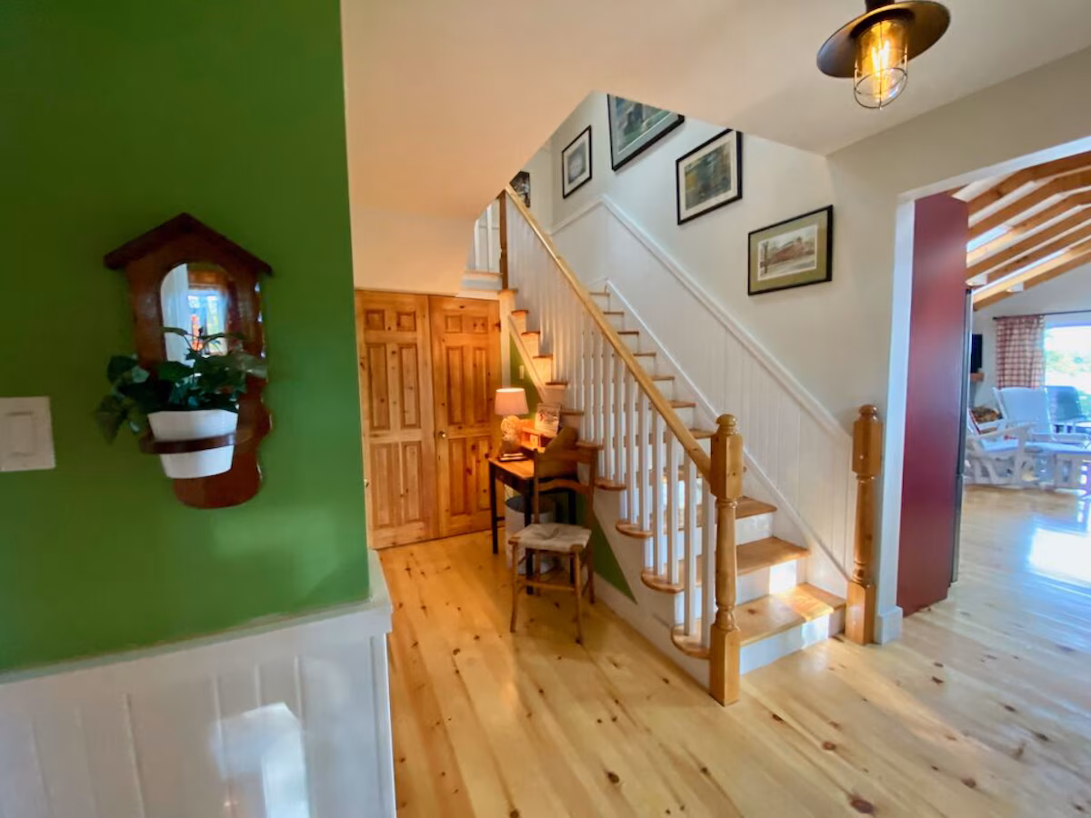 The upper level has two bedrooms with queen beds; one named the Green room and one the Yellow Room again newly renovated in 2024. The loft has a pull out coach and a half bath. Not only that we have a small space as an office that has a great view looking over the stairwell. It has a desk aerodynamic computer chair and new printer.