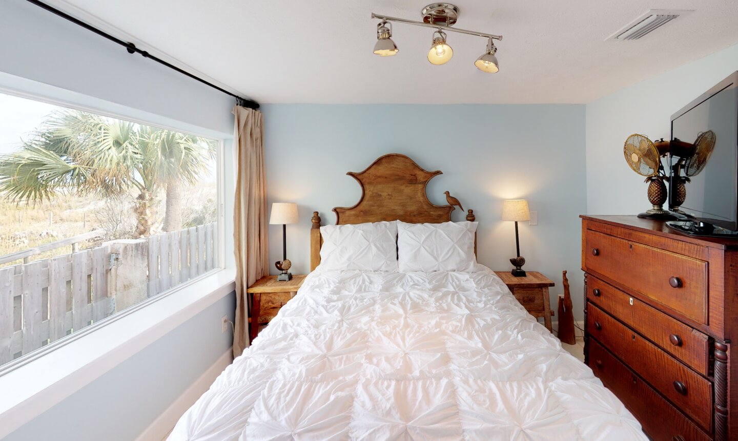 OCEAN VIEW BEDROOMS - There are 2 Queen Bedrooms. Both have Ocean Views & 42" Flat Screen TVs. One is direct Beachfront with 180 view and uses the Hall Bath. The other has an 8 foot Picture Window and a Private Bath. Enjoy waking up to the sunrise. They can be breath taking.