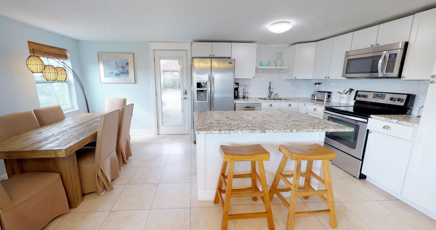 2. The OCEAN is RIGHT AT YOUR DOOR STEP. There is no long raised boardwalk like further south along Atlantic View with a 5 minute walk across the dunes to navigate with the cooler & chairs before you ever get to the water. Here the ocean and the VIEW is steps from your door. Be careful. There are some “beachfront” homes that are so “far from the beach” because of the sand dunes that you can hardly “see” the ocean.
