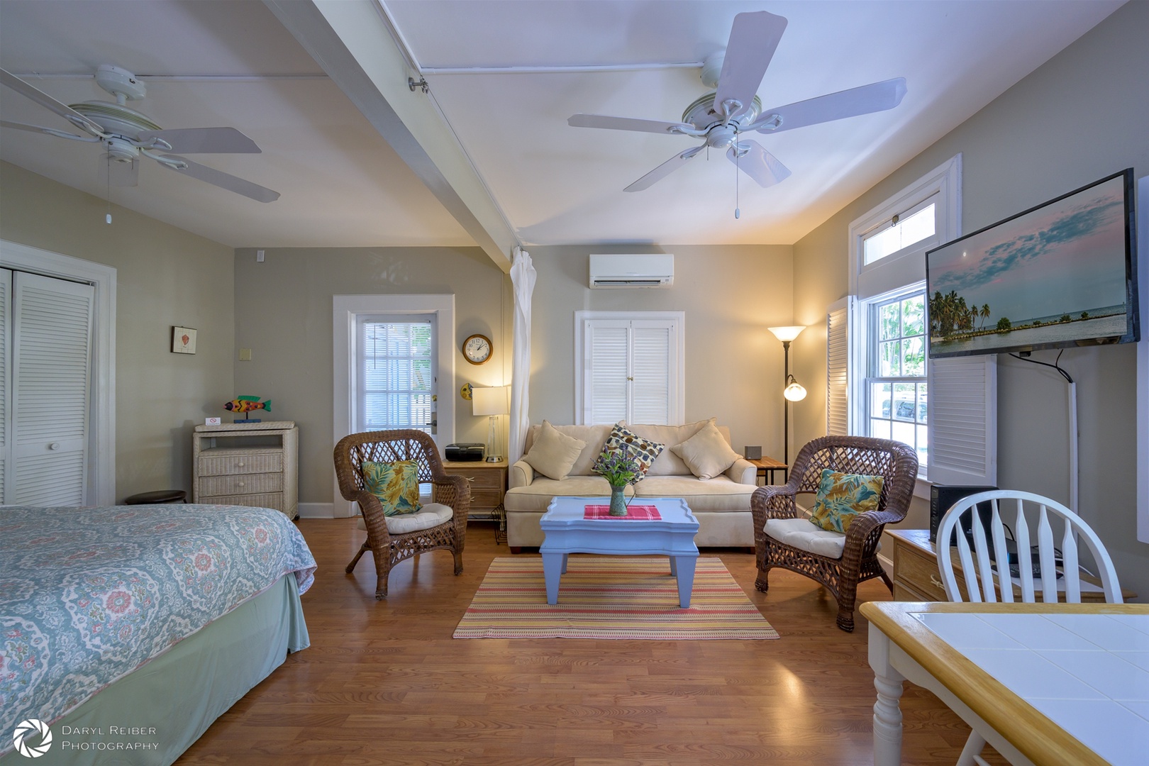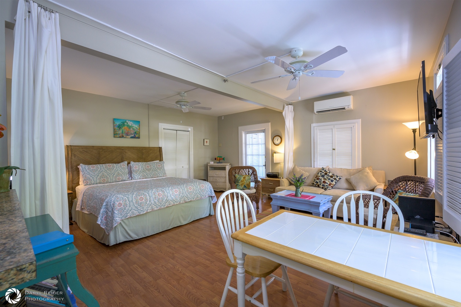 Welcome to Harvey\'s Haven—a beautiful studio in the heart of Old Town Key West! Conveniently located at the Hollinsed House on Southard Street, one block from famous Duval Street, this ground-floor studio suite is equipped to make your stay on the island comfortable and convenient. Harvey\'s Haven is both removed from and integrated into Old Town Key West. It is tucked away in a quiet neighborhood, but close enough to walk to any bar, restaurant, shop, or gallery. This is a non-smoking unit designed to accommodate two people.