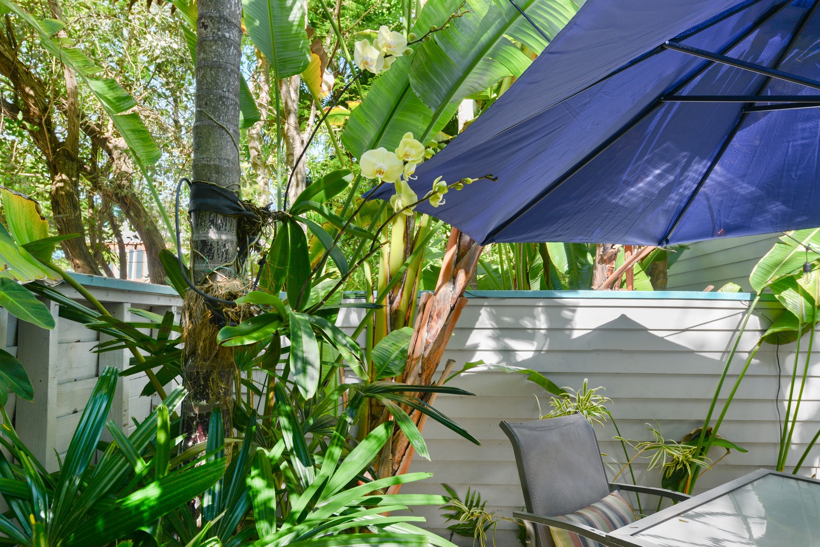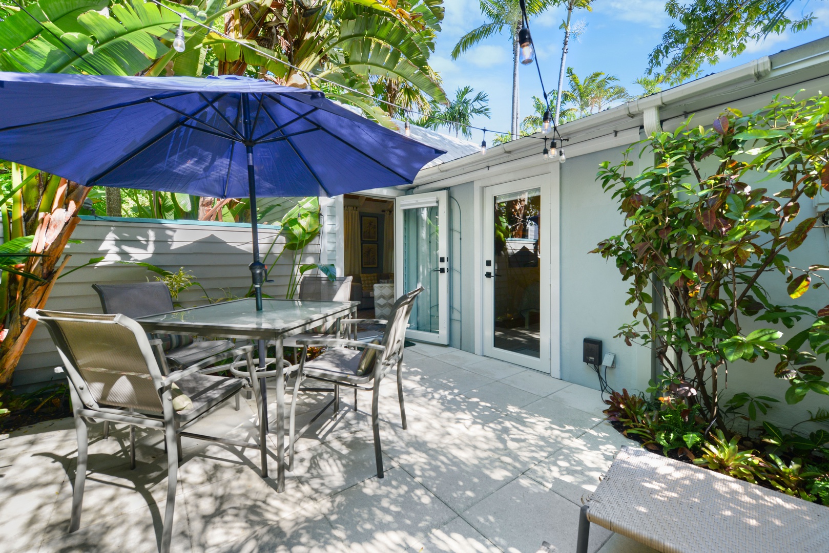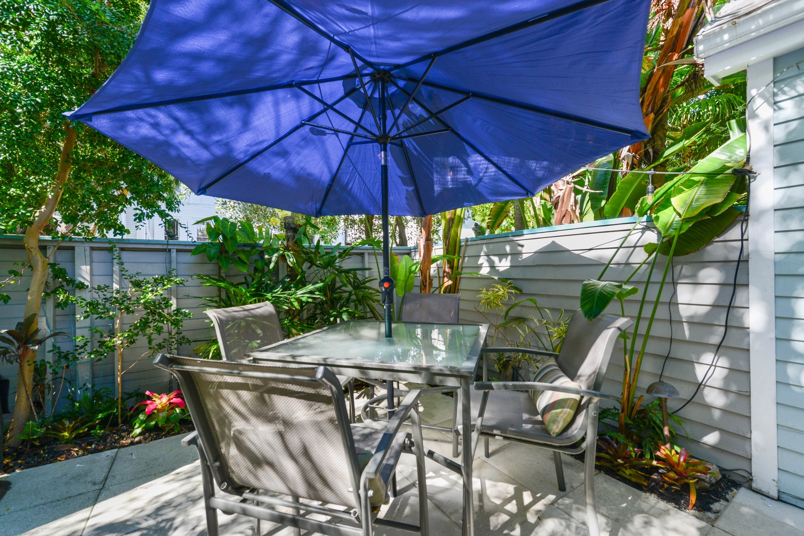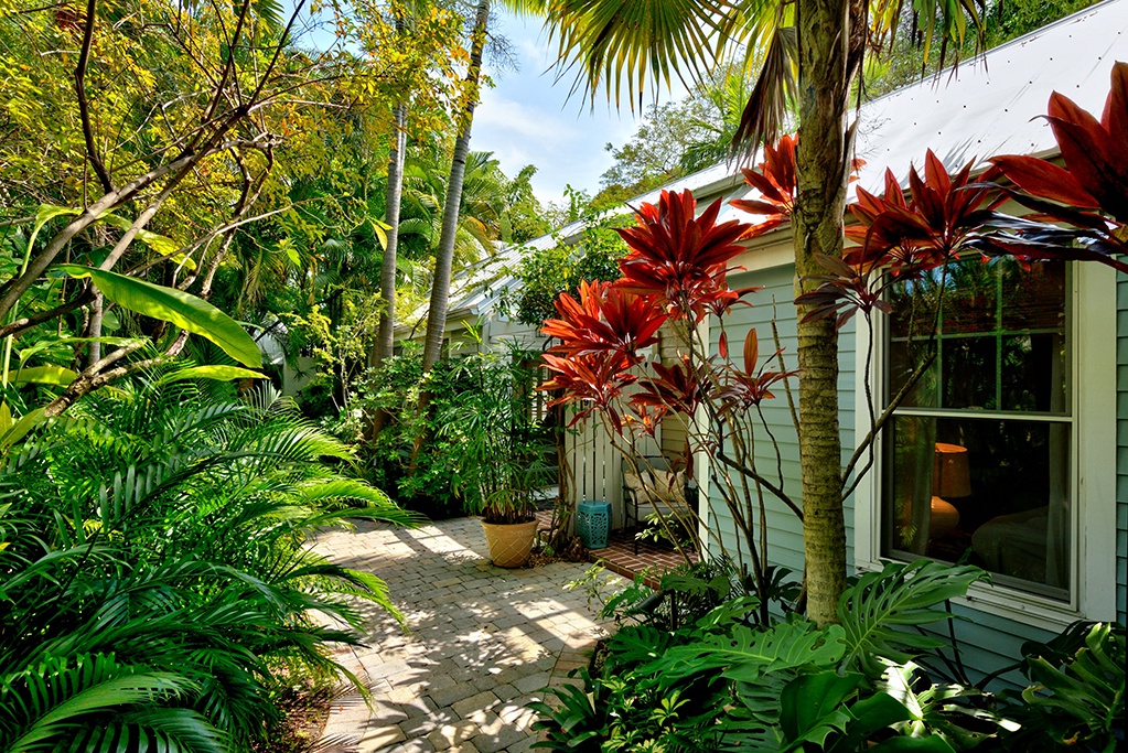 The quiet compound is located just one block from Duval Street combining the best of both worlds for relaxing and taking advantage of all that Key West has to offer. Within 2 blocks you\'ll find Key West classics like The Bull, Sloppy Joe\'s, and Hog\'s Breath as well as a plethora of delicious restaurants. Venture just a short distance further to Mallory Square or the famous Historic Seaport. It\'s easy to see why this location is unbeatable. The shared compound, of 6 total homes, features a winding brick pathway surrounded by tropical foliage and flowers that lead to a free form heated pool tucked away in the far side of the gardens. Take a refreshing dip, lounge and catch some sun, or enjoy a good book while being surrounded by beautiful trees and plants. This truly is a relaxing outdoor oasis!