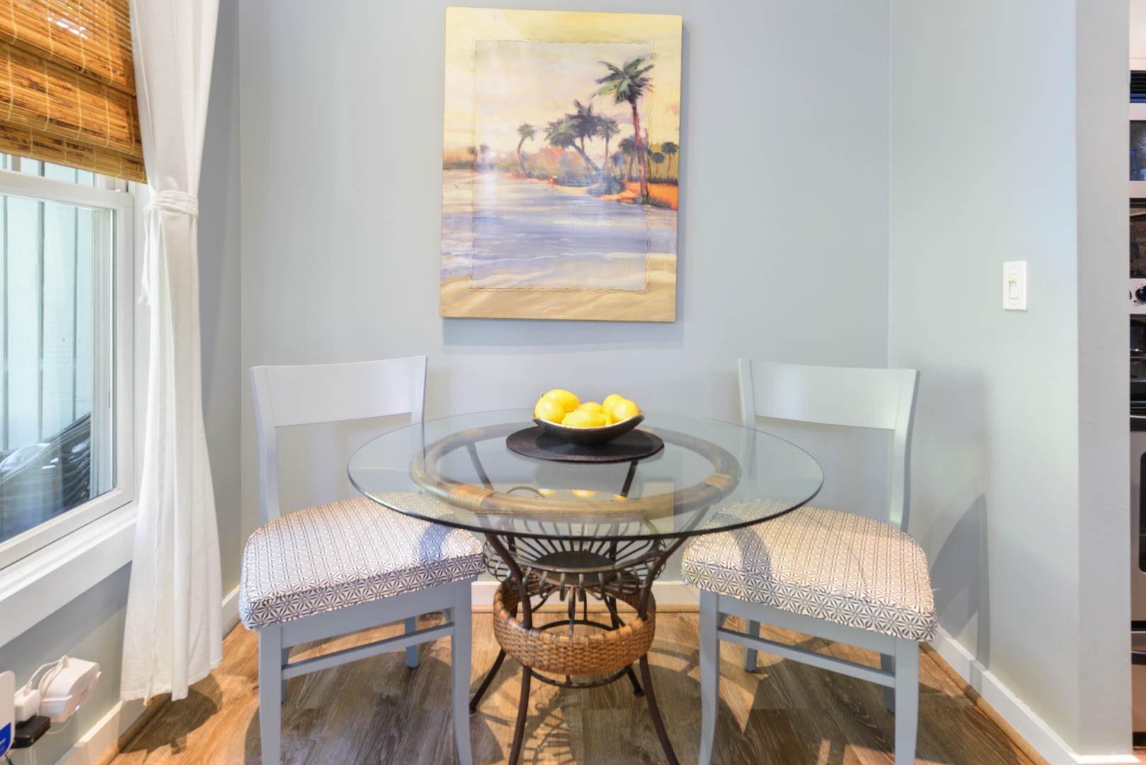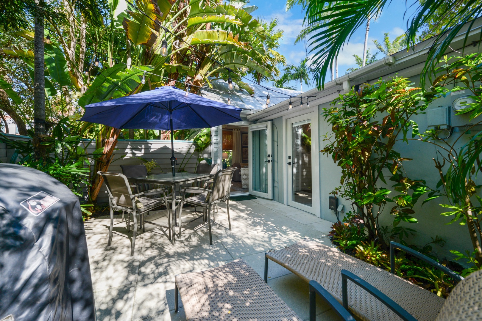 The property was perfect. Steps away from all the action, but very quiet. Great size rental, pool steps away, and a private patio with furniture and grill. Had a bike rack by the front to lock your bikes up as well.