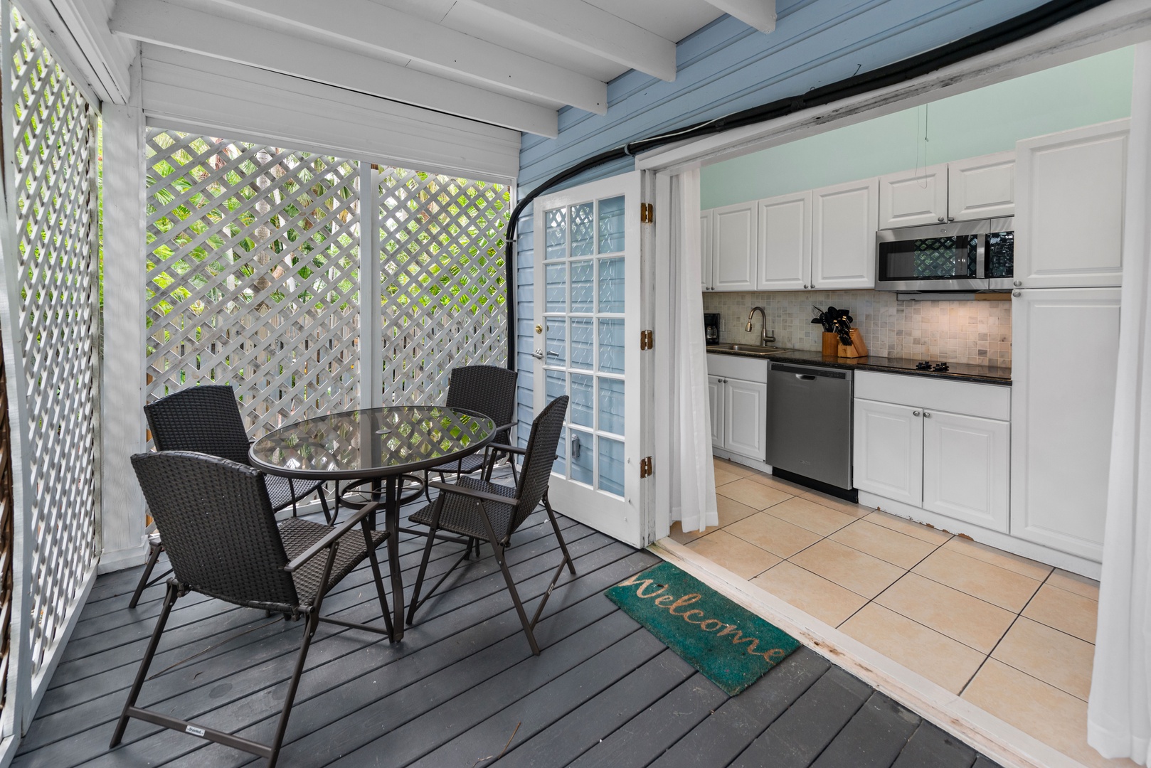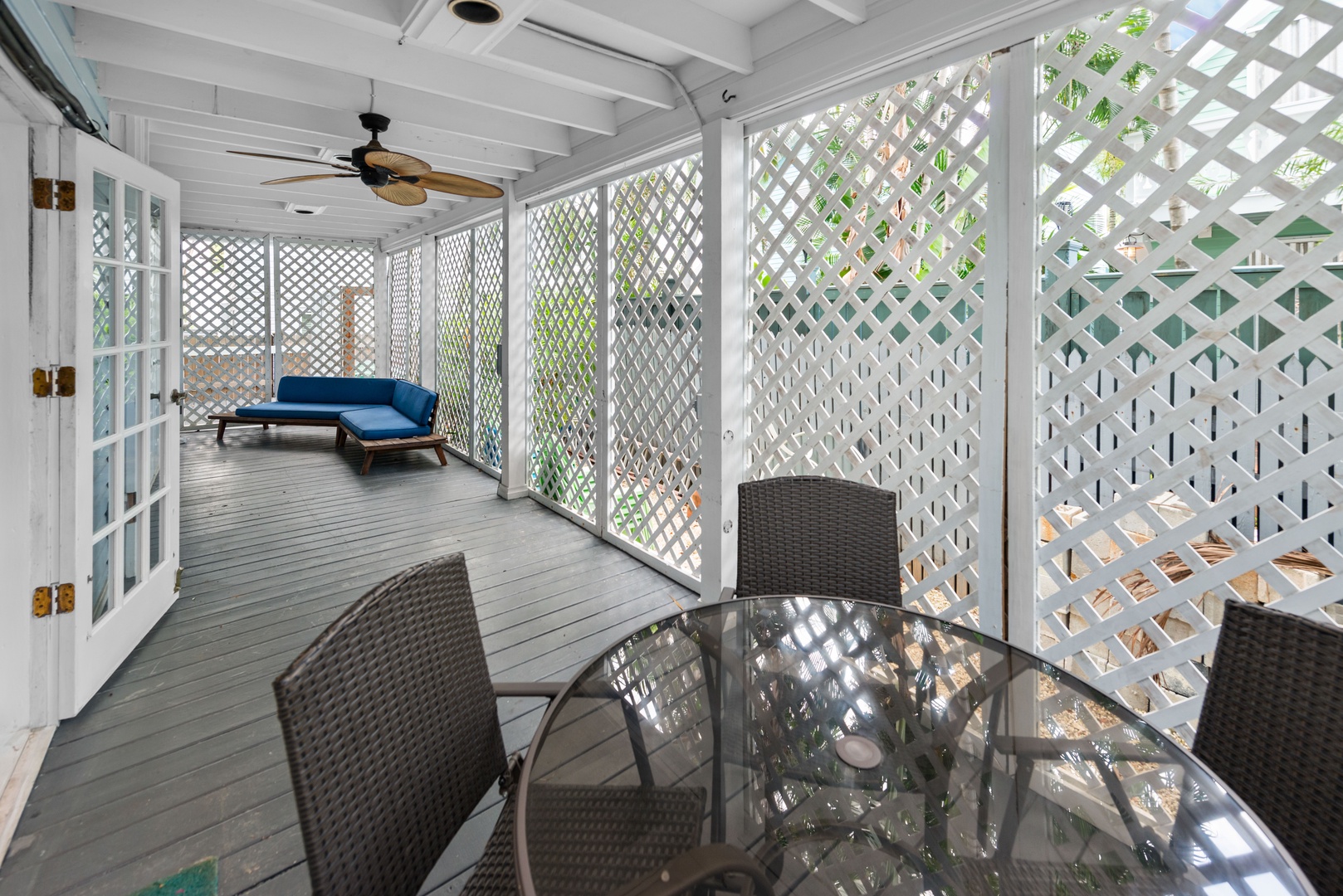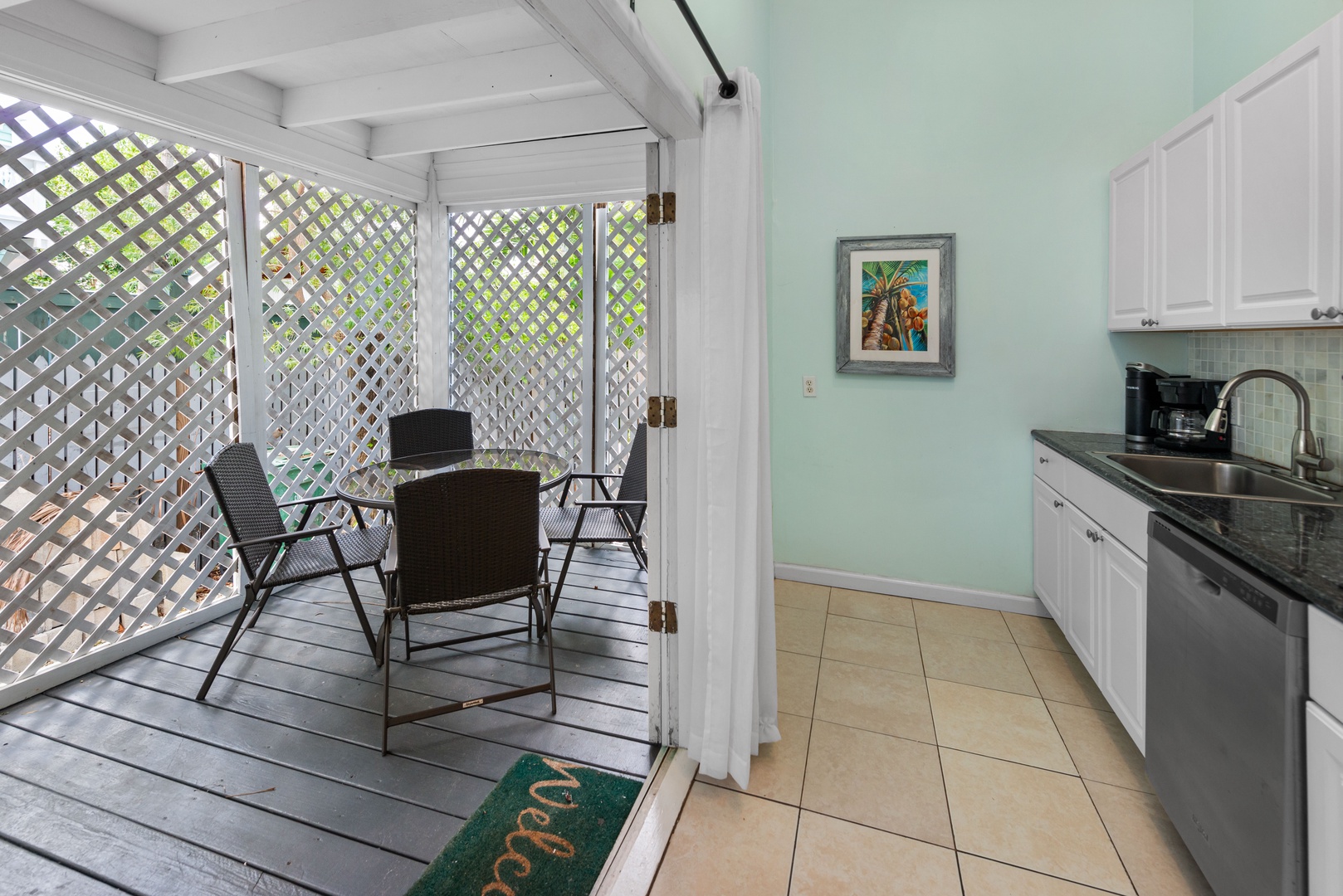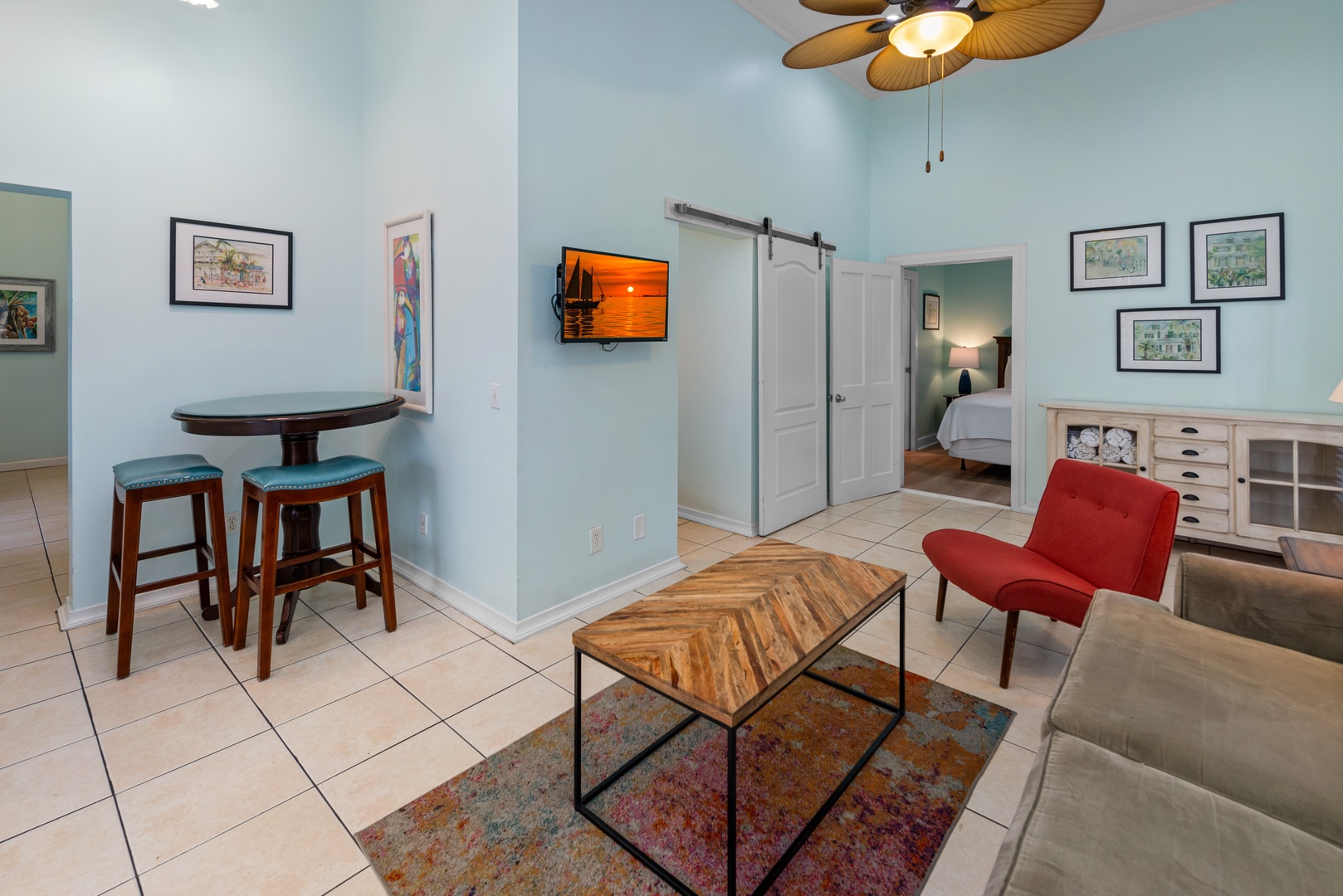 This spacious ground-level two-bedroom, two-bathroom property is located in the heart of Key West right off of Duval Street. A private, enclosed patio beckons you to relax in peaceful seclusion. The primary bedroom features a king-sized bed and a 32\" flat-screen TV. The second bedroom has a queen bed. The living room area has as well as another 32\" flat-screen TV. The kitchen features a full-sized refrigerator, oven, toaster, microwave, and coffee maker to do all or none of the cooking while enjoying the island life. This property comes equipped with a private porch, air conditioning, free wi-fi, and an in-unit washer/dryer.