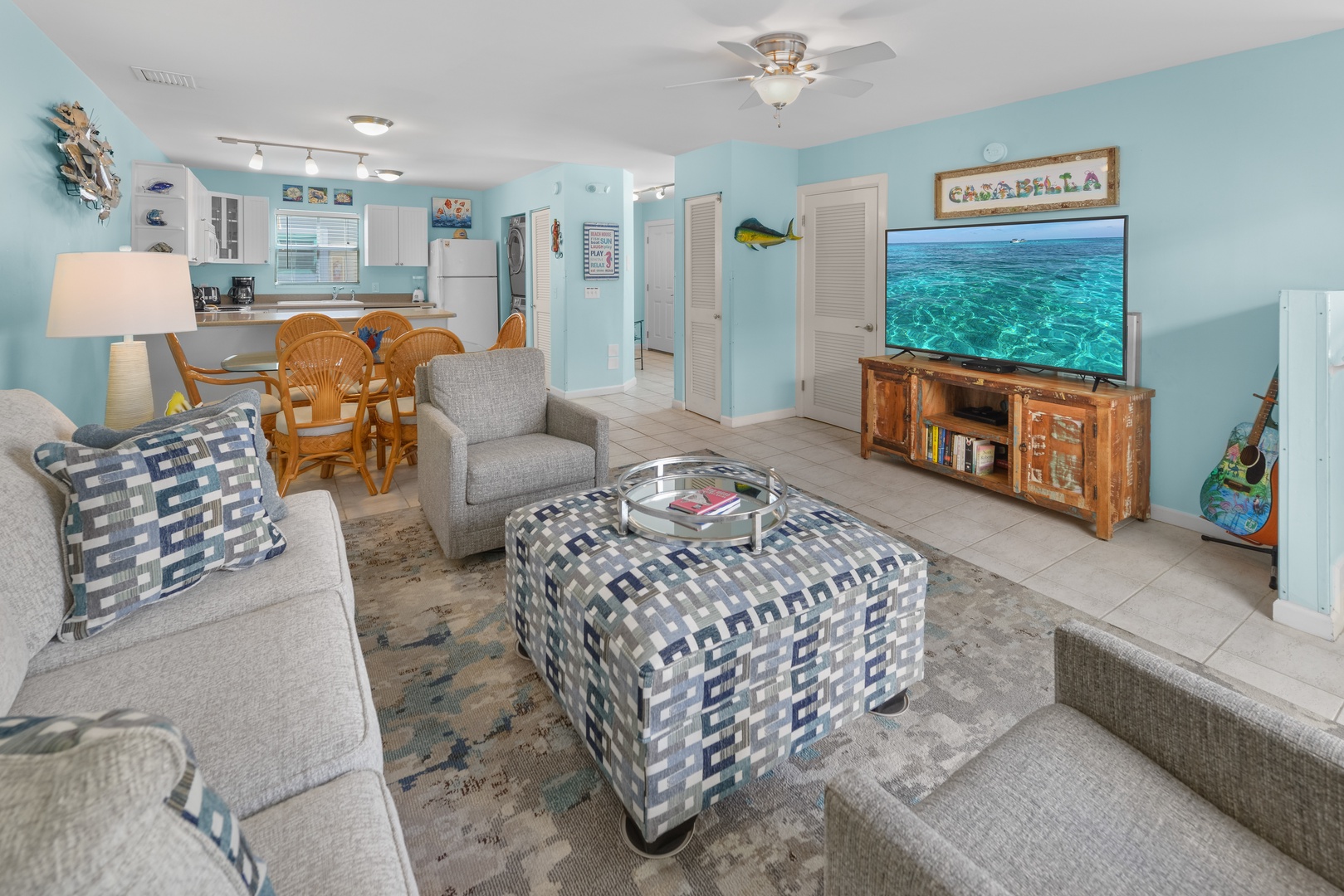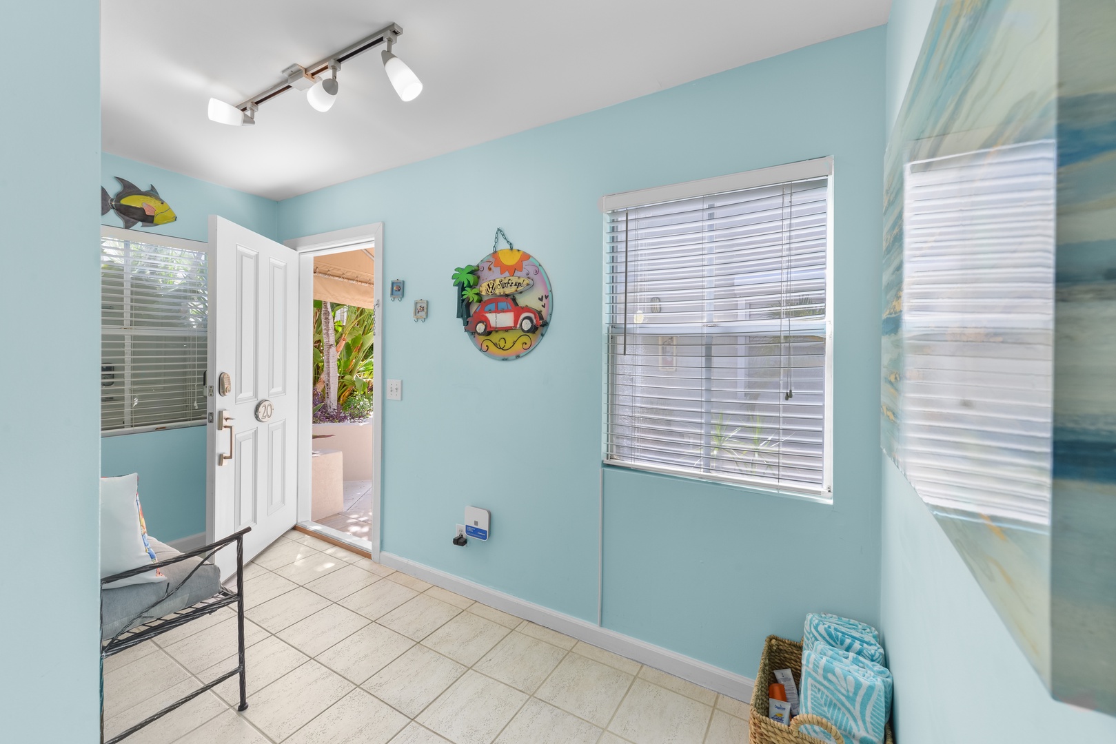 On the second floor, you will find 2 bedroom suites, each with their own private bathroom and an additional private balcony off the primary suite.