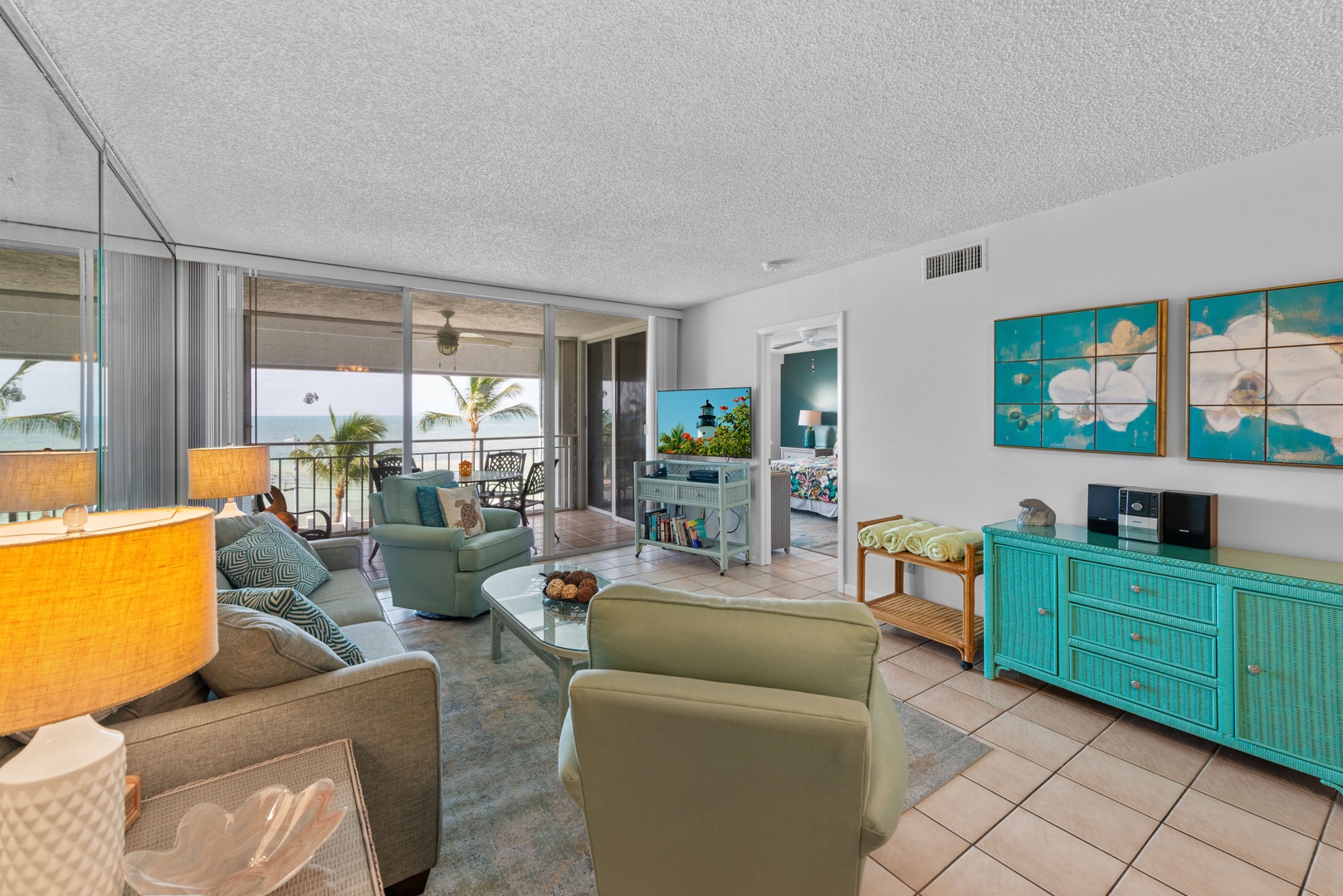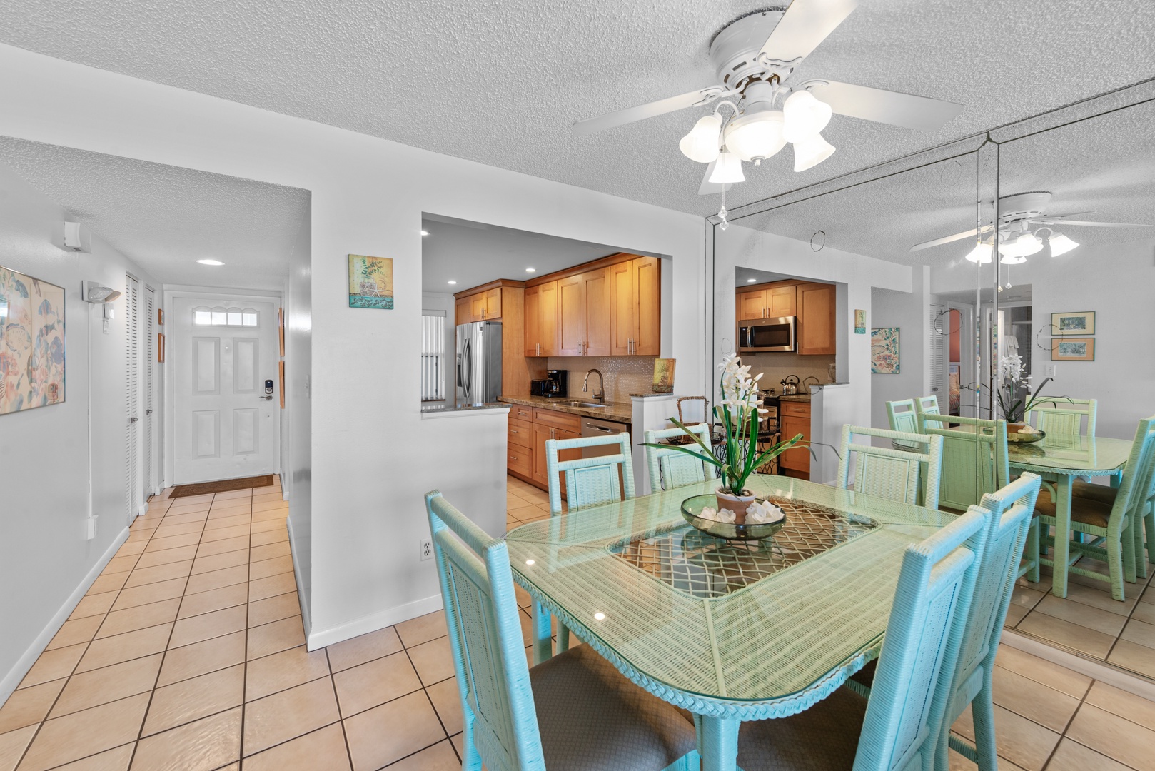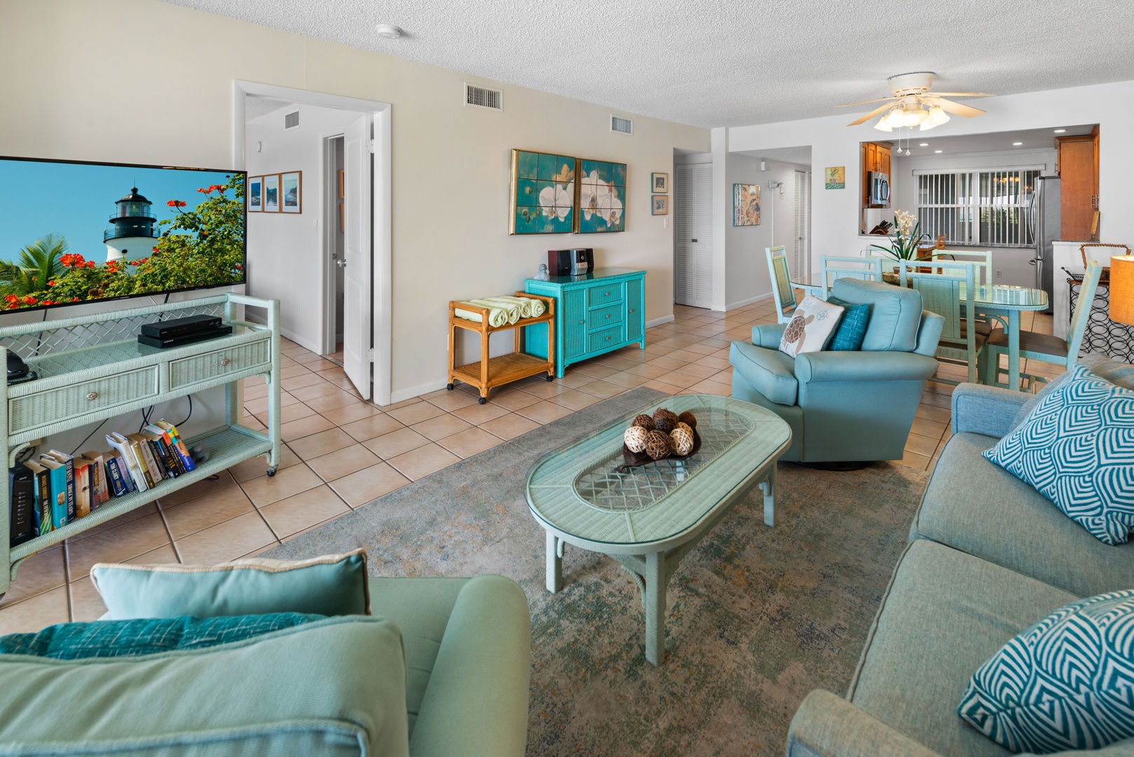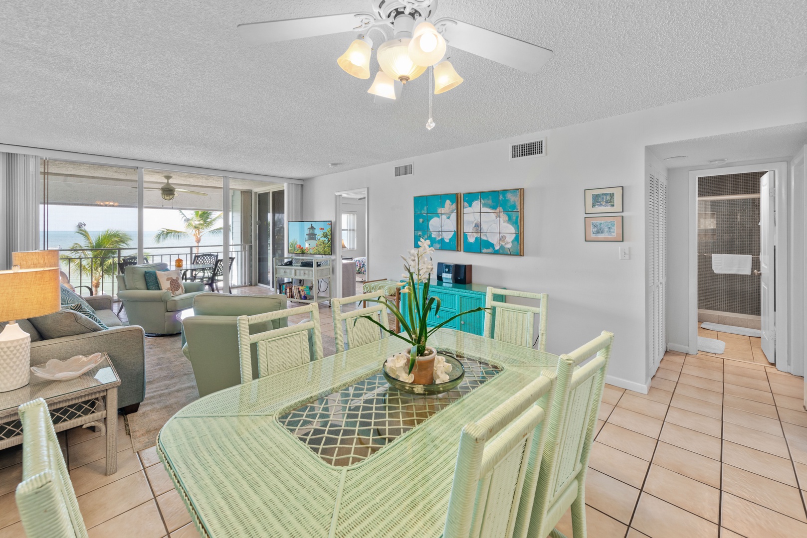 Make your vacation memorable and relish in the comfort and beauty of The Sea Orchid. This recently renovated condo features two bedrooms, two bathrooms and a magnificent view of the ocean. The open air design of the living/dining area adds to the spaciousness. While looking out over the Atlantic Ocean, recline on your sofa or rock yourself in your wicker rocking chair and take in the colors of a Key West sunset. The recently renovated kitchen is roomy and boasts a stainless steel refrigerator, and double sink. The large glass dining table has room for six a great view of the ocean.
