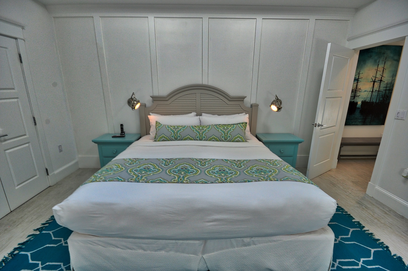 Enter the home and fold the doors away for a totally open indoor/outdoor living environment. The open floor plan of the living, dining and kitchen is beautifully designed with comfortable yet classy furnishings. Set against a backdrop of gray washed wood walls with just the right pops of color, the space sets a totally relaxing mood. A sparkling white kitchen is refreshing to the eye and super functional (including drip coffee maker). Bedding: 3 kings