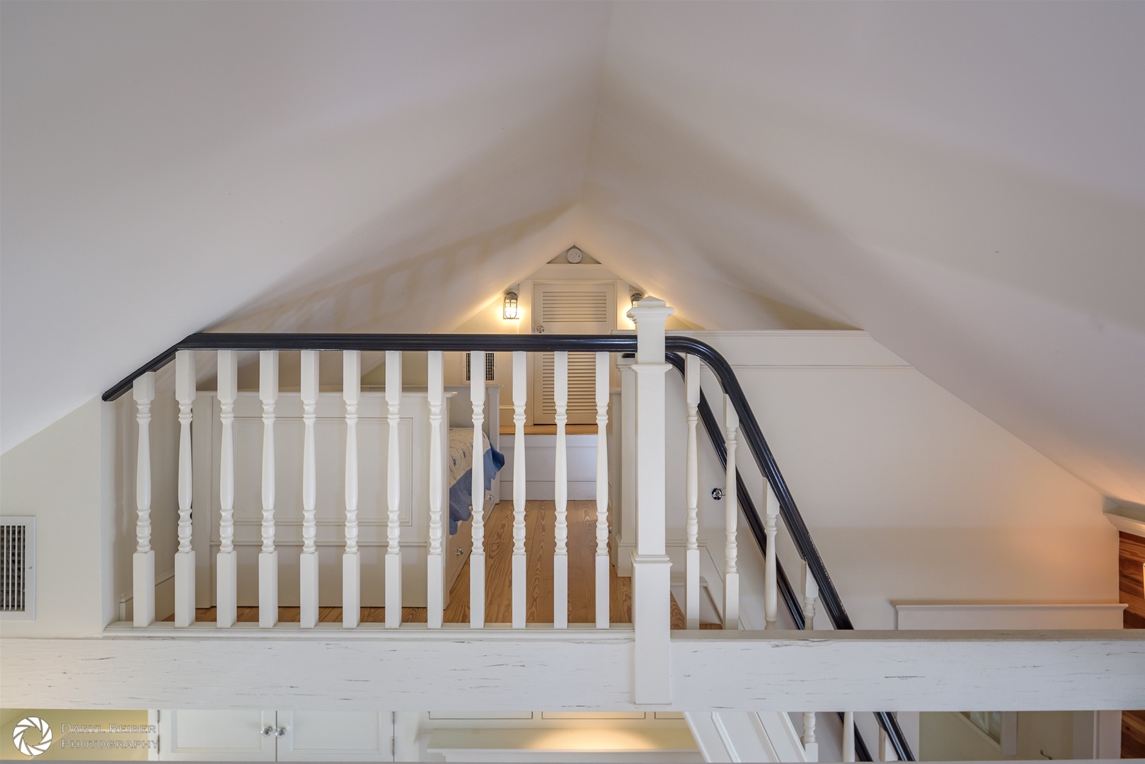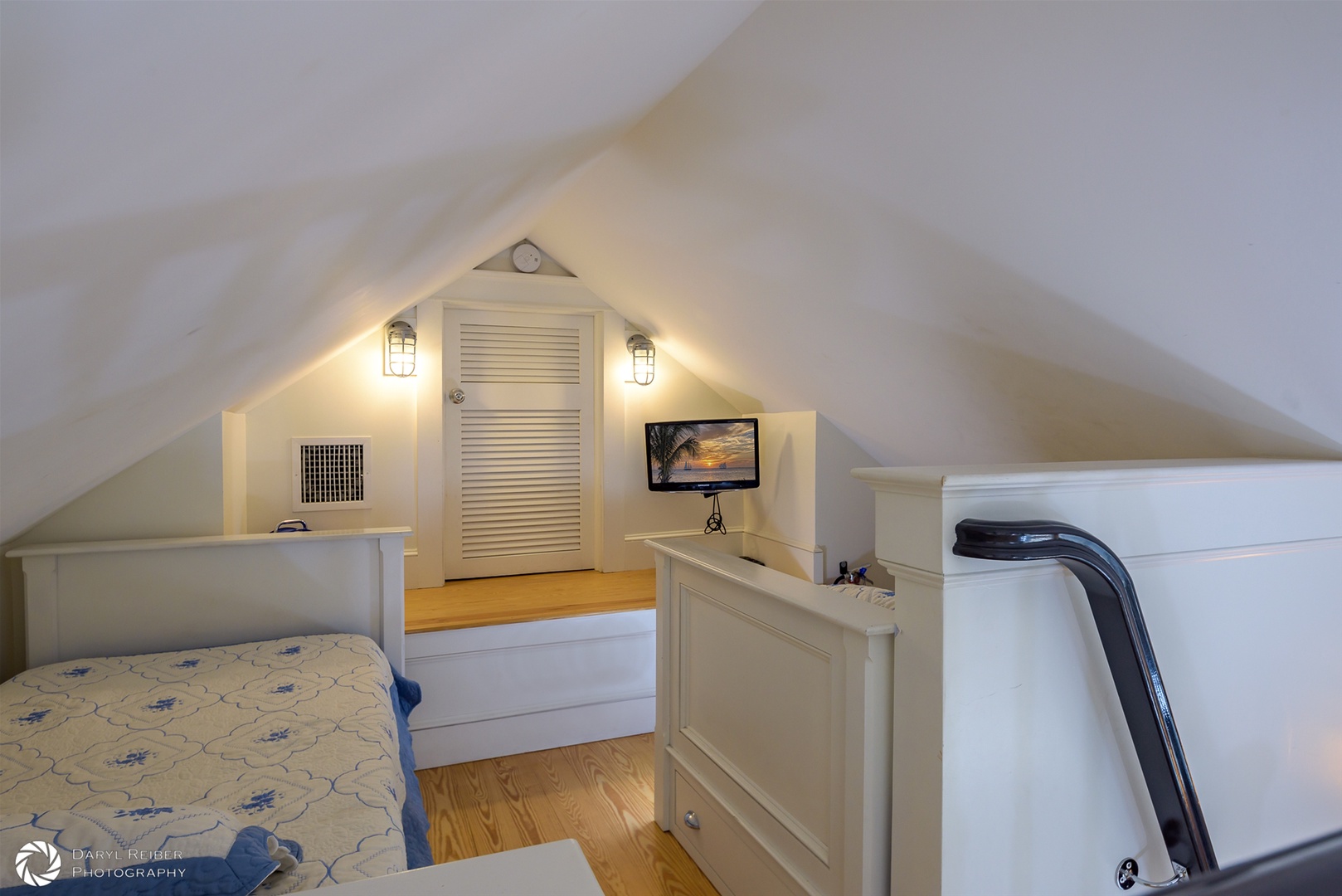 The primary bedroom has a king bed with an ensuite bathroom. The second bedroom has a queen bed and is adjacent to a second full bath via a private hall. A cozy loft with two twin beds and storage drawers sits above a common room, which is accessed by funky alternating ship ladder stairs, custom-made as well. The loft and both bedrooms have top-of-the-line Simmons AirCool ComfortPedic memory foam mattresses. There are TVs in each bedroom (and loft) and there is an additional 42\" TV in the living room. All TVs come with streaming services, including Netflix, Hulu, Max (formerly HBO) and YouTube TV.