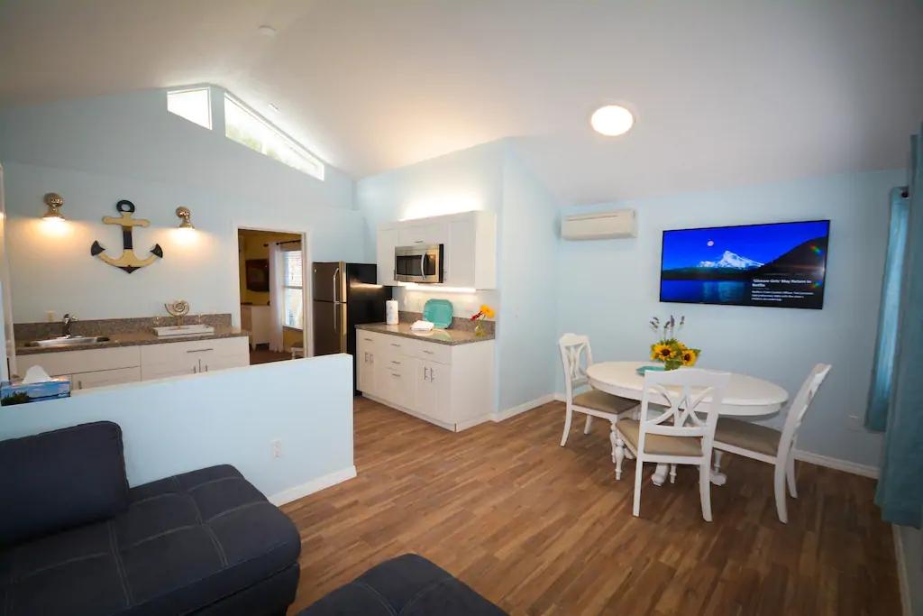 We are a small resort on Siesta Key offering daily rentals Villa 4 is newly renovated Featuring 1 bedroom, 1 bathroom with luxury pillow top mattress and 50 inch HD SMART TV in the bedroom. Large living room with 55 inch HD SMART TV. Dining Table and Chairs, A/C, stainless steel appliances, fridge with ice maker, freezer, toaster. K Cup Coffee maker, single induction hotplate, All plates, dishes and silverware are supplied. Free wifi. Free parking. Close walk to Siesta Key beach. NO smoking NO pets Great value