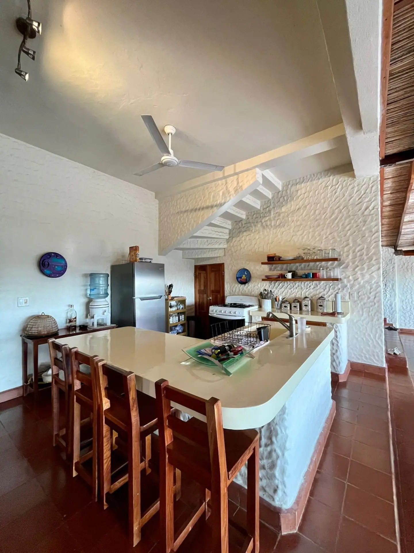 Maryuris has access to the house for the washing machine on the ground floor and for cleaning, but will try always not to disturb guests. She will clean the house every second day (except Sundays) for no charge, or daily for an additional charge. She also can help with cooking and washing clothes (again for an additional charge).