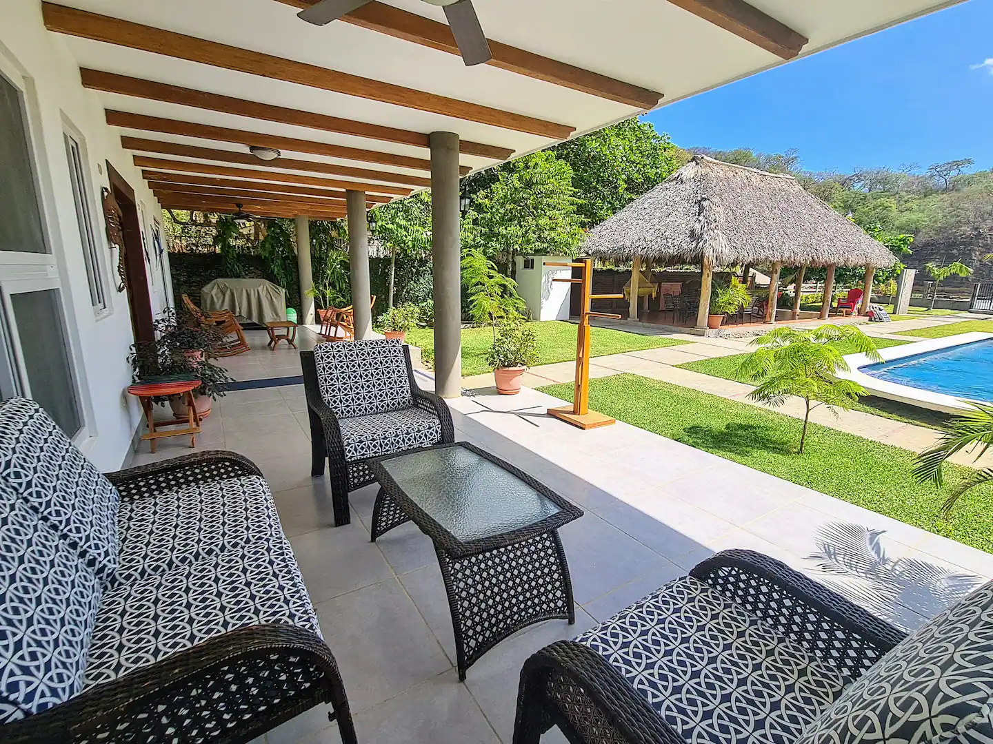 This home offers direct access to the beach, a private pool, large terraces, 4 bedrooms, upstairs balcony, modern kitchen, grilling area, and poolside cabana. We can also help guests connect with surf instructors, yoga classes, massages, horseback riding, boat trips, fishing tours, canopy tours (zip lines), as well as recommend bars and restaurants in the area.