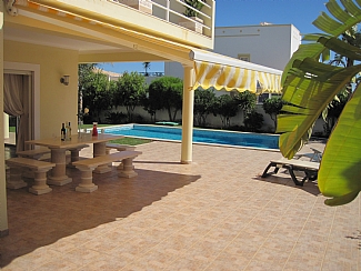 Luxury all inclusive 4 bedroom villa with NO hidden extras. Sleeps 8 + attached seperate apartment can increase capacity to 10, Immaculately decorated and furnished exceptionally well maintained and with decor to a very high standard 4 bedrooms 3 bathrooms one en-suite, well equiped kitchen, dining room, outside dining area large gas barbecue+gas, private heated freshwater pool, air conditioning, Wireless internet+printer, outdoor table tennis, UK tv+99 portuguese + sports chanels on a 60" tv, safe, chess dominoes cards and more Situated in a quiet location in lovely porto de mos a 5 minute walk to the beautiful clean sandy beach and within walking distance of the old town of lagos Save on baggage allowance we supply beach towels + bathroom towels hair dryers adaptor plugs etc Panoramic sea views 180 degrees from the roof terrace large wine/beer cooler large fridge freezer/ice maker + large welcome pack included, All clients receive a free dolphin trip as guests of "days of adventure"
