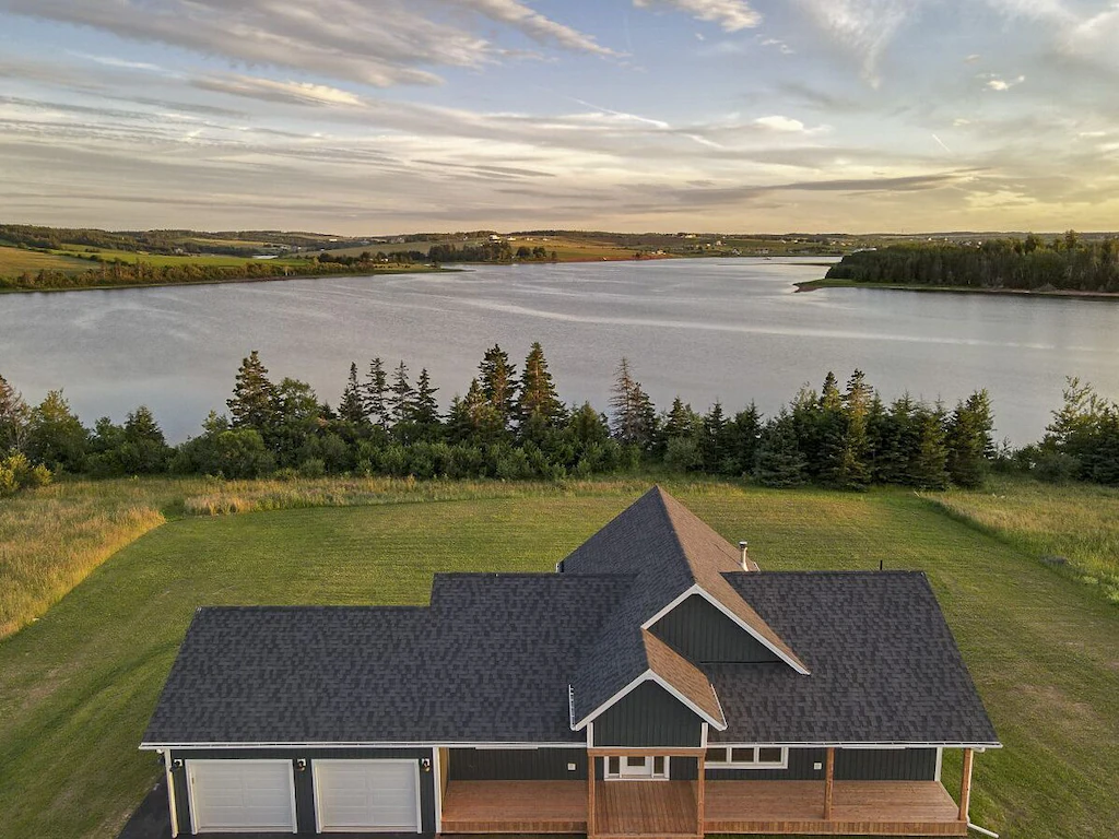 The main floor has an open concept kitchen-dining-living area that overlooks the water. The main floor also has a spacious entry, two king bedrooms and 2 baths. The entire front side of the main floor (living and both king bedrooms) have 10' patio doors that access the spacious deck overlooking the water.