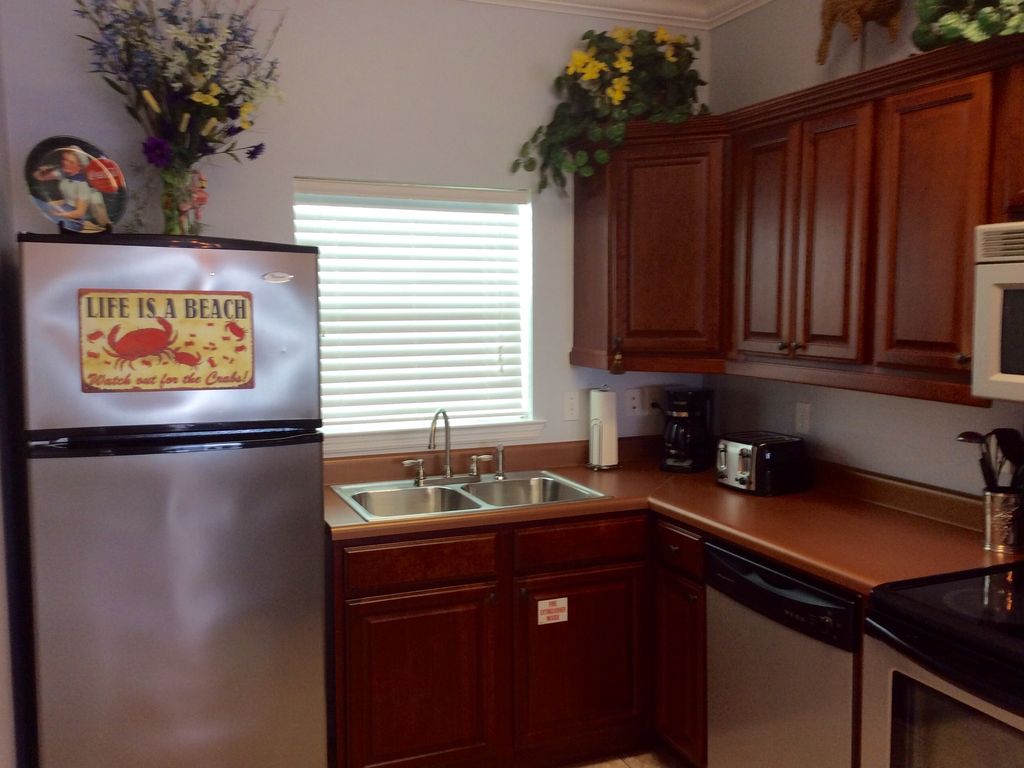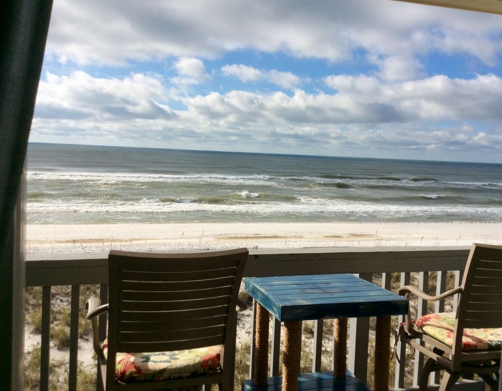 950 sq feet Not including the Gulf front balcony that is directly on the Gulf of Mexico it doesn't get any closer to the gulf then this ! 2 bed /2 bath that has been completely modeled starting with the crown molding in to new furniture ,new draperies,etc. this has a washer and dryer inside the unit . One king bed in one room and two queens in the gulf front room. One bathroom has a full bath and the other has a shower ,beach towels are included, a fully stocked kitchen .It is approximately 1 1/2 miles to the core of the beach where all the bars and restaurants are located . This property has a nice community pool exclusively for owners and renters at villas on the gulf and well-kept grounds which include a lagoon that has lots of ducks and if you get lucky you may see the swans that are always fun to feed. Be sure to watch the video to see if this is a good fit for you. The only thing I like renters to do is to check out the videos of the different places I rent first because then you can see a lot more than just by looking at a bunch of pictures. This condo for example has two flights of stairs so if you have any kind of a mobility issues this is not the condo for you -it does however have in its year and a half of rental history alot of happy customers that want to come back and it shows in the reviews but if you have any kind of mobility issues I do have other condominiums available to rent on Pensacola Beach through Vrbo/ Homeaway with elevator access and no stairs to climb . I want you to rent a place that you will be happy once you arrive there ! There is a couch and a love seat in the living room brand new and furniture that’s made by hand by the owner of this place . It’s got a lot of love and wow factors !