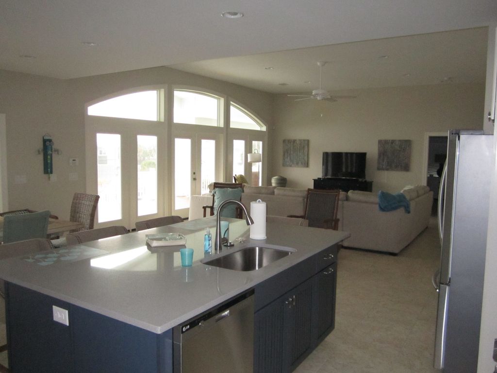 Come and relax in our luxurious, newly constructed home just a stroll away from the Gulf of Mexico, a two minute walk. This 3 bedroom, 2.5 bath is waiting for you along the emerald waters of the Gulf of Mexico with some of the whitest beaches in the world. Our 2100 square foot home has an open floor plan with stainless appliances in a fully appointed kitchen. There are flat screens in every room with Direct TV and Wifi. There are high ceilings and glass all along the front of the house to take advantage of the views. Outside, there is over 850 square feet of decking with patio furniture, a gas grill, and an outdoor shower along with lockable storage below. In that lockable storage, you will find beach chairs and a cart to take all of your stuff to the beach. There is lots of parking including enough for a trailer. Although this house is not fully wheelchair accessible, it is handicap accessible with an external covered lift if you want to bring your elderly parents along. This home is a perfect vacation spot for families and couples of every age and ability. It was built as a house that we would enjoy ourselves and not simply as a rental. It is your home away from home with almost everything supplied that you would normally need. Note: We do not take reservations of less than 5 nights. We also do not do wedding receptions.