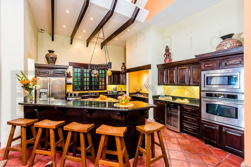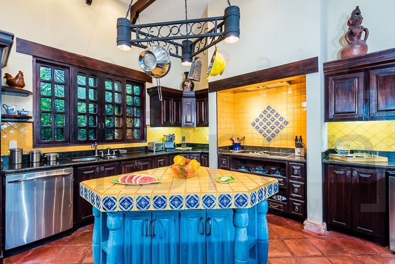 The master suite has its own two sink bathroom, walk-in closet and a King-sized canopy bed. Each of the 2 additional bedrooms has a private bathroom and closet. One offers a four-poster King-sized bed and the other has 2 Queen-sized beds. All bathrooms are beautifully decorated with Talavera local hand-made tiles.